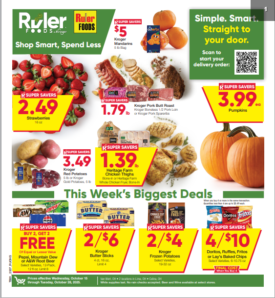 The Ruler Foods weekly ad 15-28 oct ,2025 is the best way to find new savings every week. Each flyer brings fresh deals on groceries, snacks, frozen foods, and more. You’ll find discounts on top items, including Kroger brands like Simple Truth and Private Selection. These ads help shoppers plan meals and cut grocery bills.